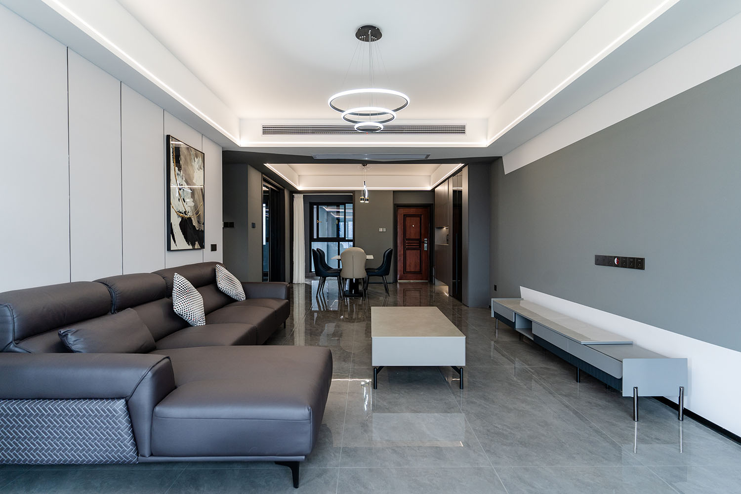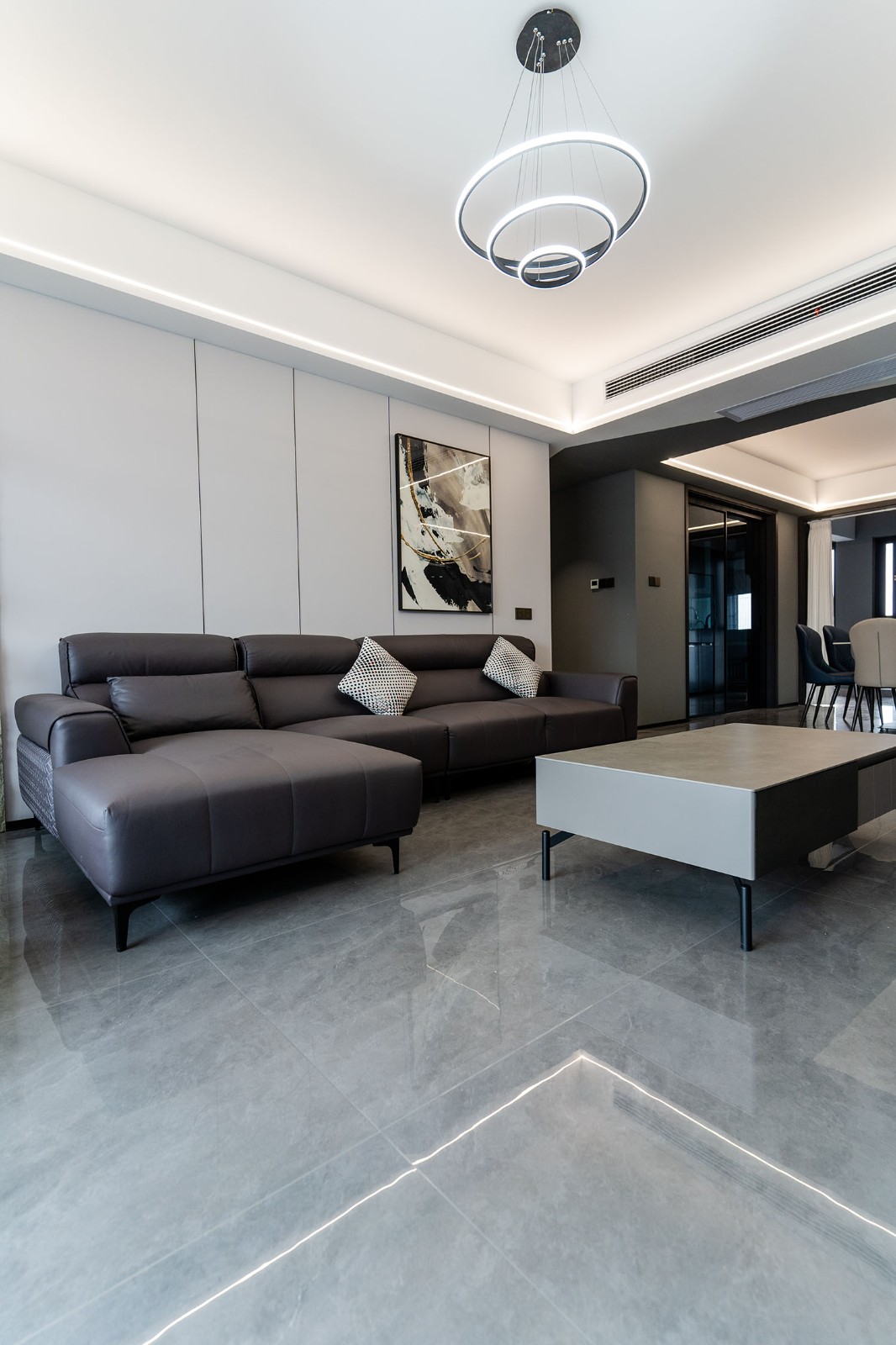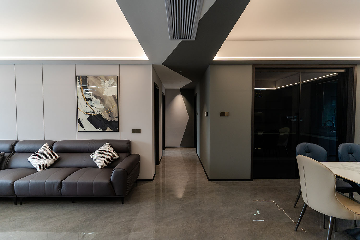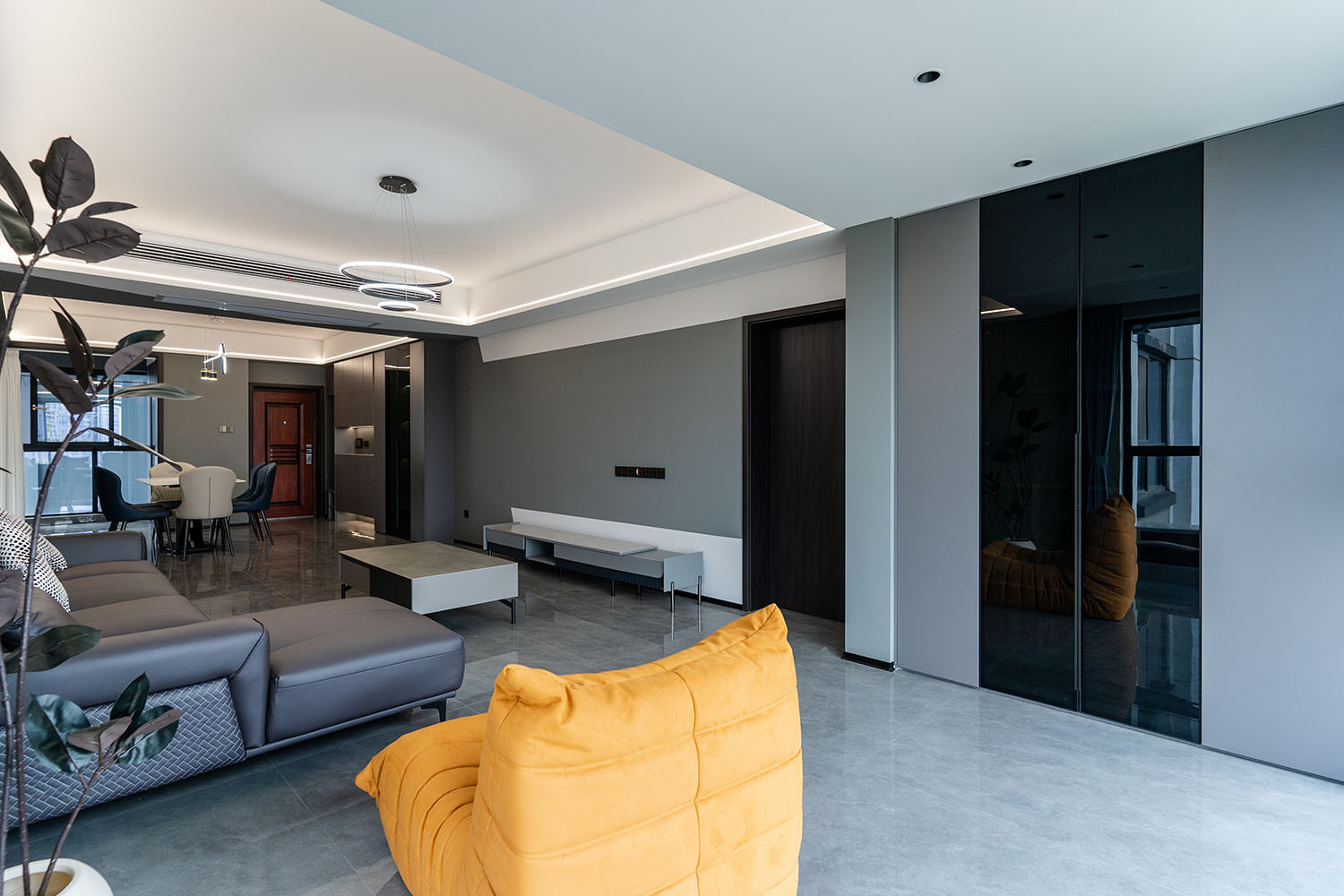 本案的核心設(shè)計(jì)理念是 “于克制中,見(jiàn)自由” 。旨在通過(guò)嚴(yán)謹(jǐn)?shù)臉?gòu)圖與色彩控制,展現(xiàn)一種高度理性的秩序之美。設(shè)計(jì)并非追求冰冷的極致,而是在黑白灰的框架內(nèi),通過(guò)材質(zhì)的溫度、光影的變幻與線條的韻律,注入感性的生活氣息,最終達(dá)成一種冷靜與溫暖、簡(jiǎn)約與豐富的微妙平衡,滿足都市精英對(duì)品質(zhì)與格調(diào)的雙重追求。