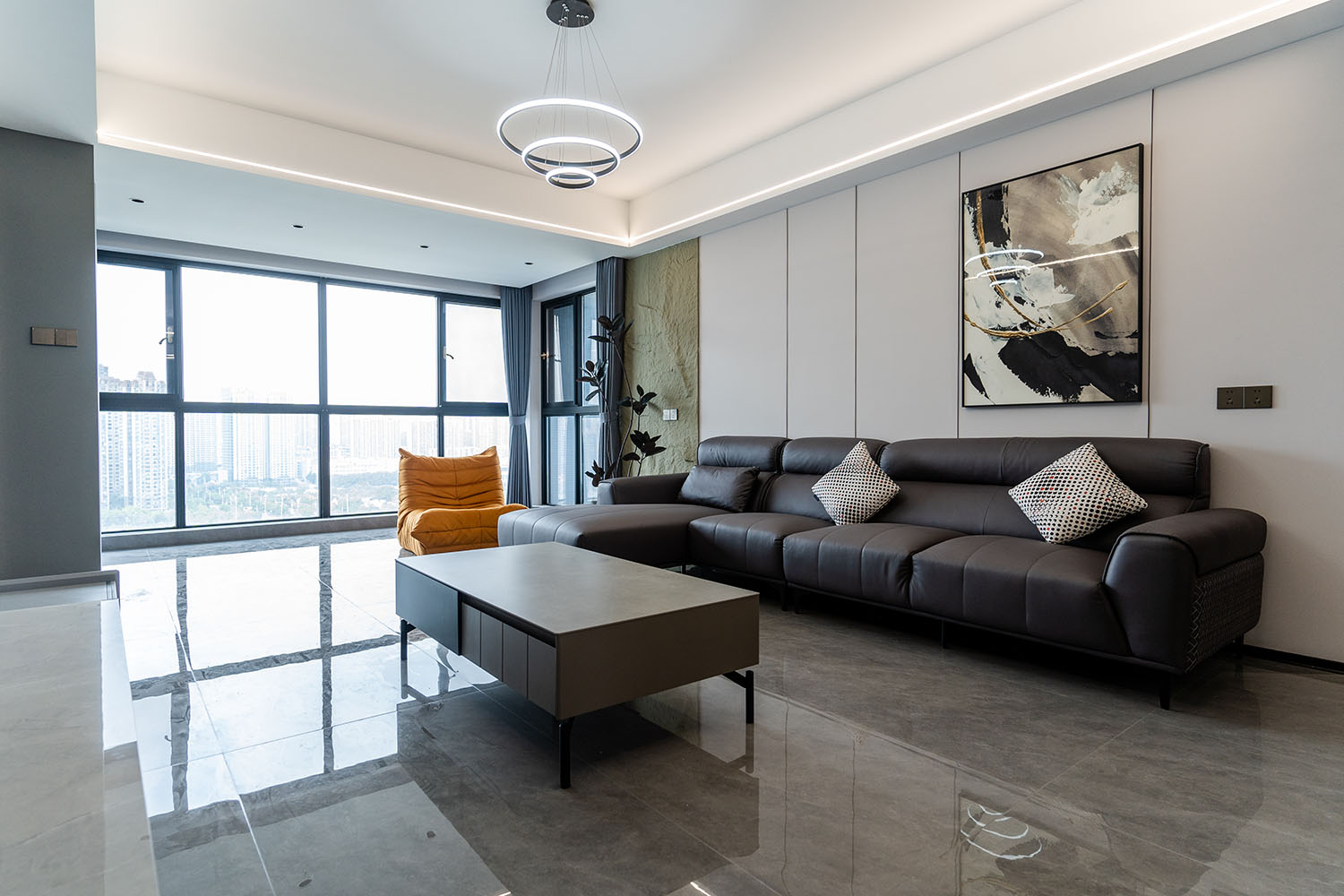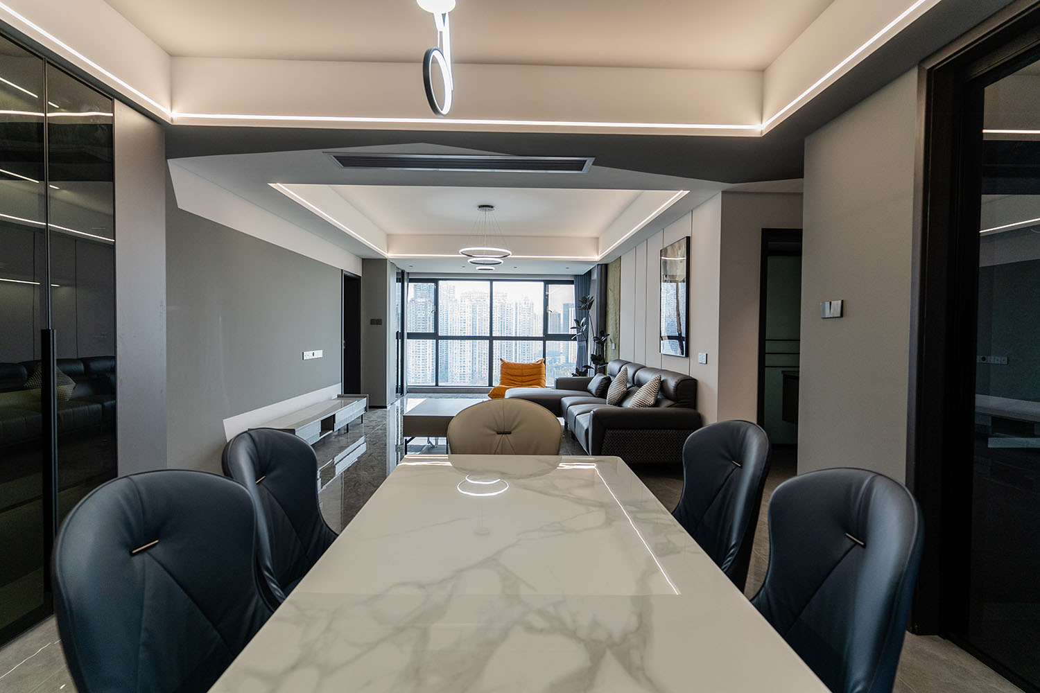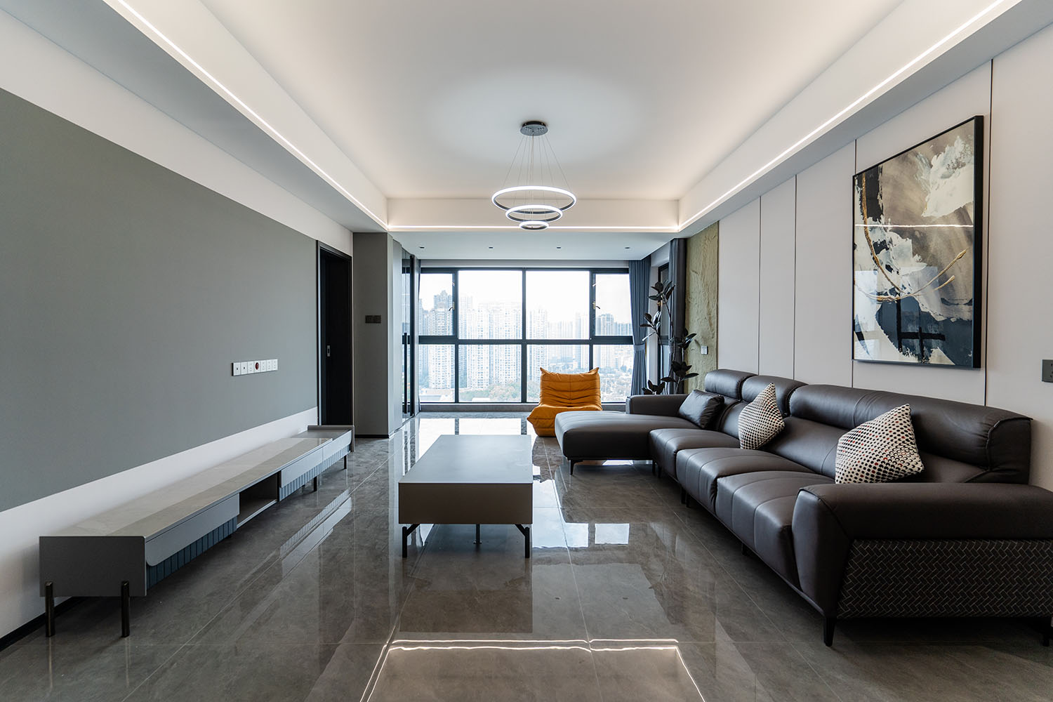 本案的核心設(shè)計(jì)理念是 “于克制中,見(jiàn)自由” 。旨在通過(guò)嚴(yán)謹(jǐn)?shù)臉?gòu)圖與色彩控制,展現(xiàn)一種高度理性的秩序之美。設(shè)計(jì)并非追求冰冷的極致,而是在黑白灰的框架內(nèi),通過(guò)材質(zhì)的溫度、光影的變幻與線條的韻律,注入感性的生活氣息,最終達(dá)成一種冷靜與溫暖、簡(jiǎn)約與豐富的微妙平衡,滿足都市精英對(duì)品質(zhì)與格調(diào)的雙重追求。