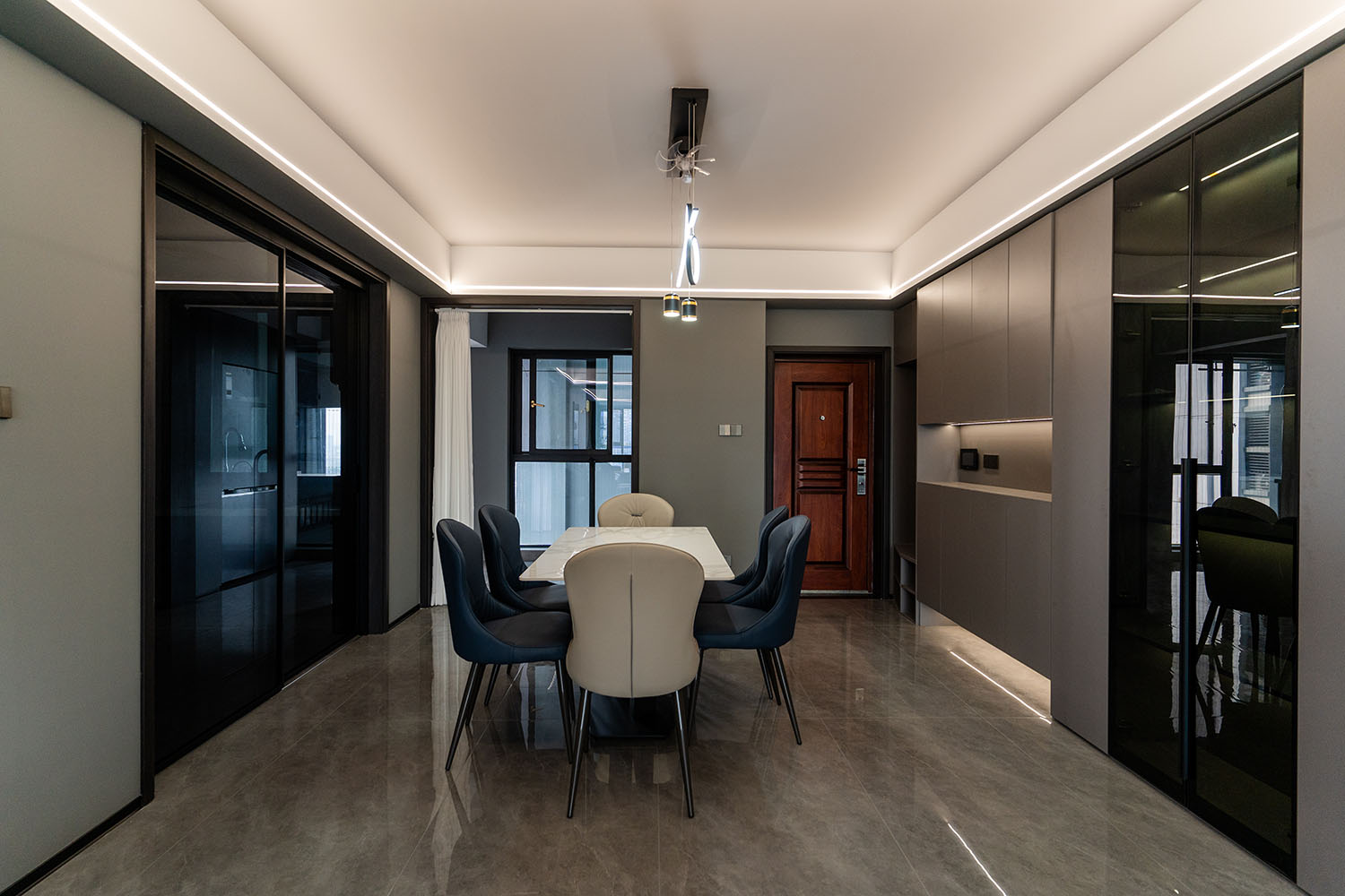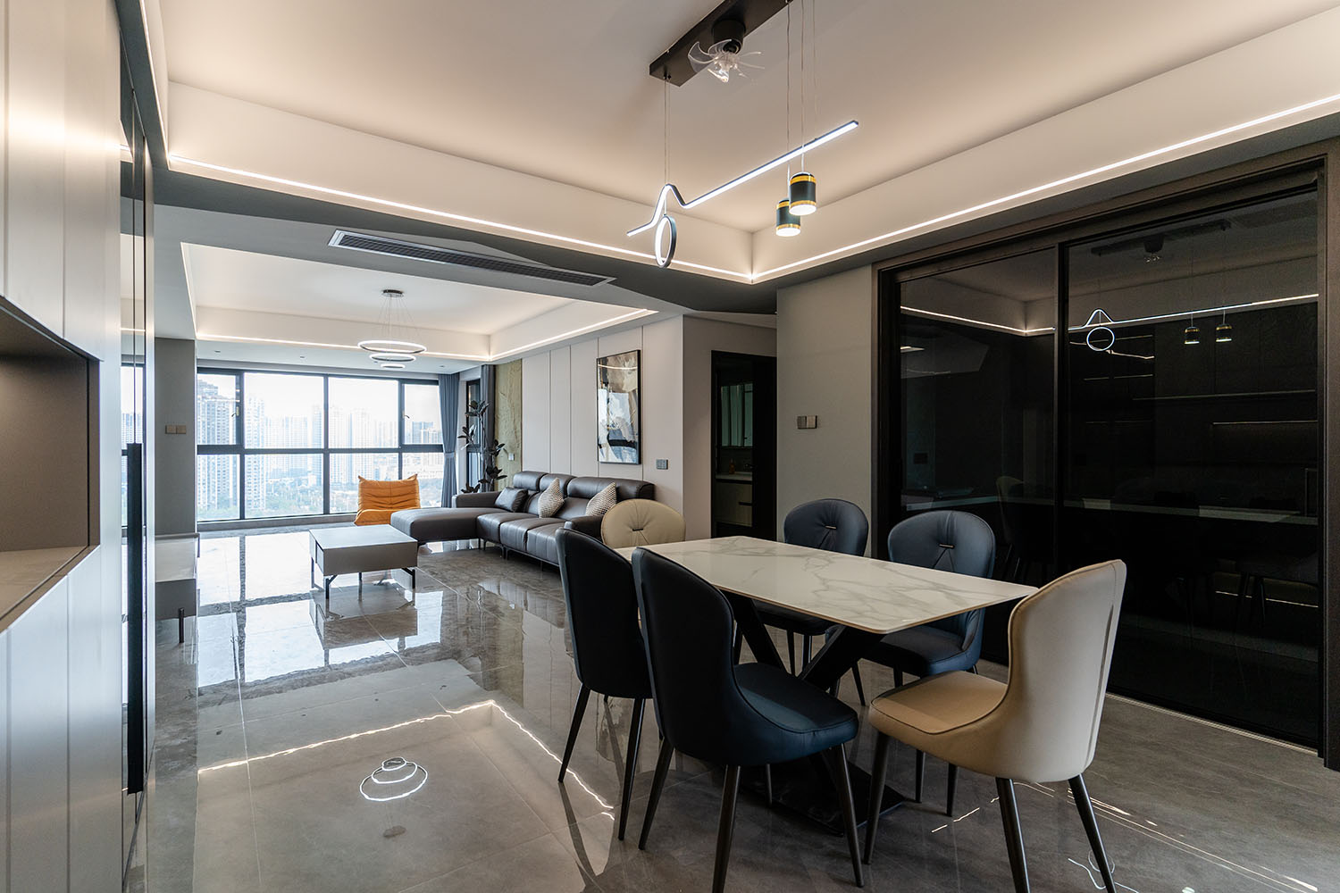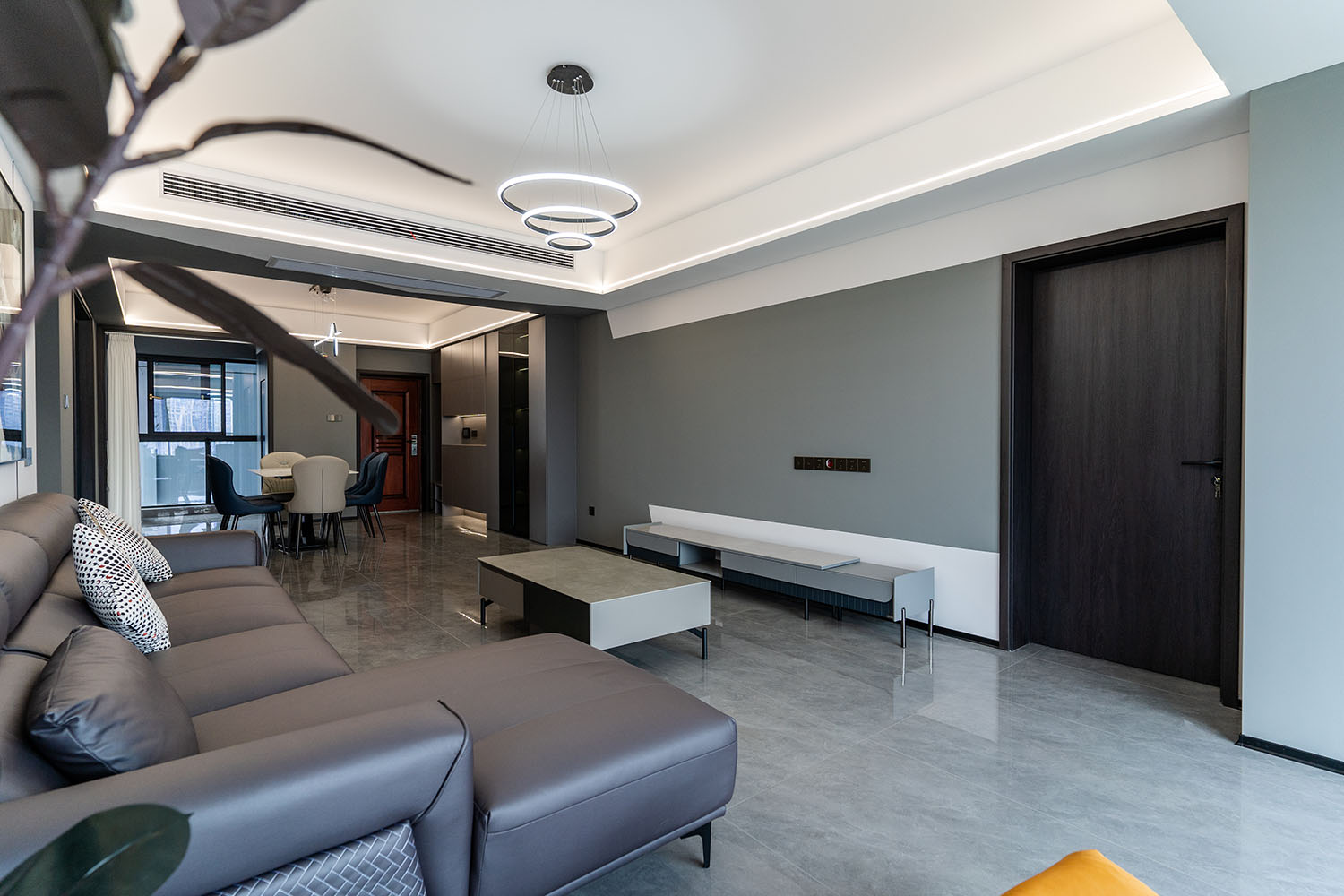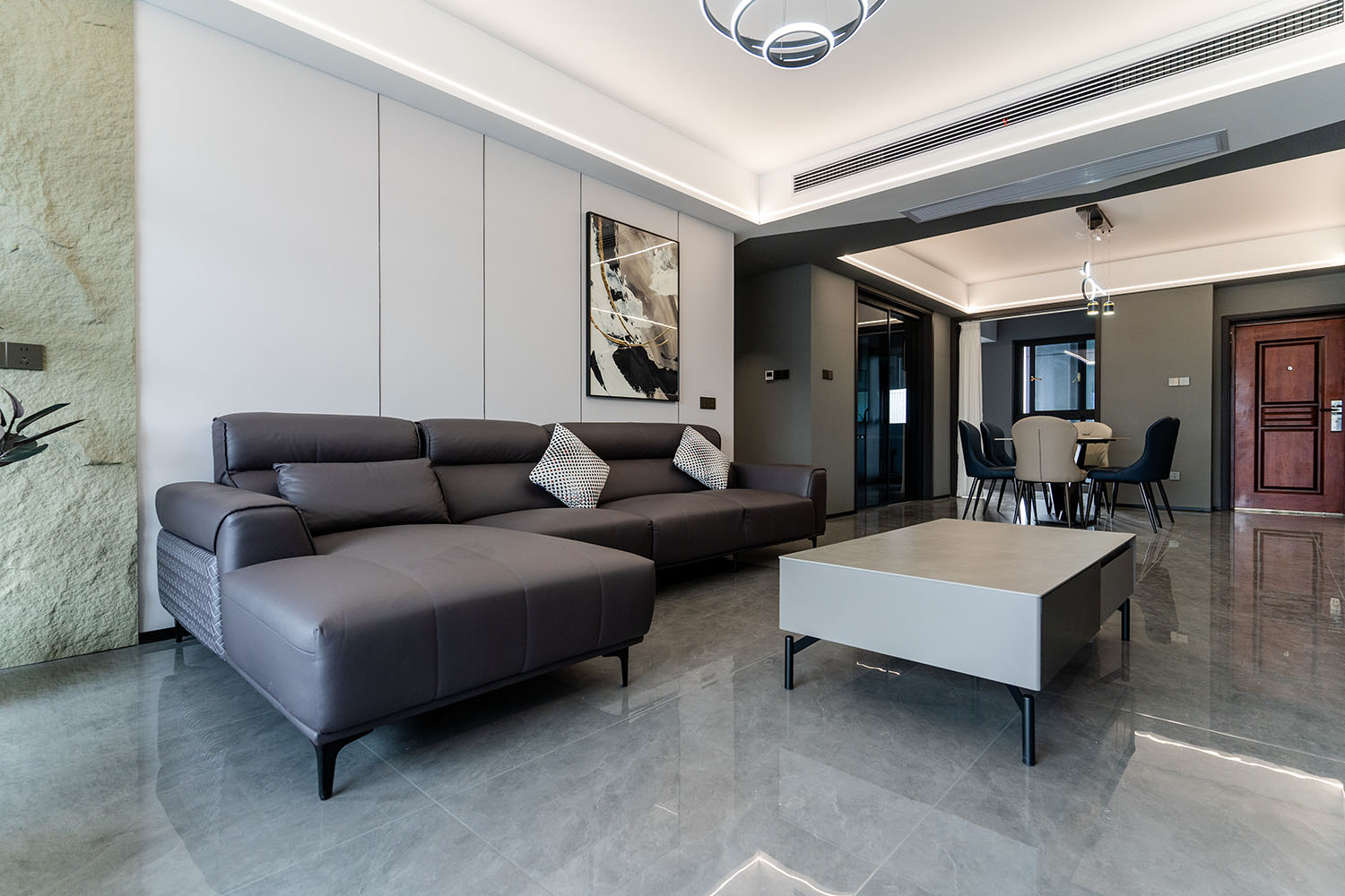 本案的核心設(shè)計(jì)理念是 “于克制中,見(jiàn)自由” 。旨在通過(guò)嚴(yán)謹(jǐn)?shù)臉?gòu)圖與色彩控制,展現(xiàn)一種高度理性的秩序之美。設(shè)計(jì)并非追求冰冷的極致,而是在黑白灰的框架內(nèi),通過(guò)材質(zhì)的溫度、光影的變幻與線條的韻律,注入感性的生活氣息,最終達(dá)成一種冷靜與溫暖、簡(jiǎn)約與豐富的微妙平衡,滿足都市精英對(duì)品質(zhì)與格調(diào)的雙重追求。