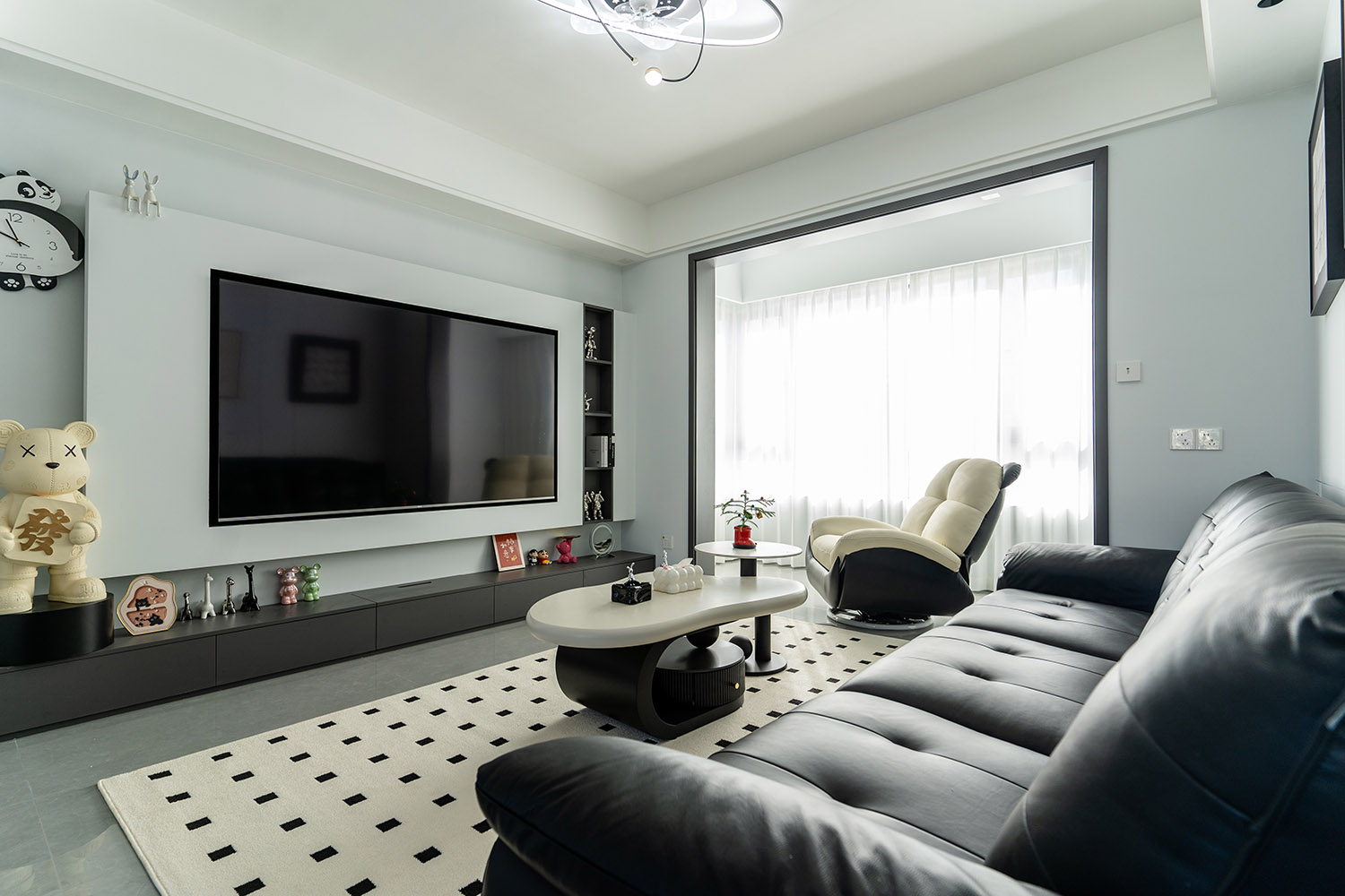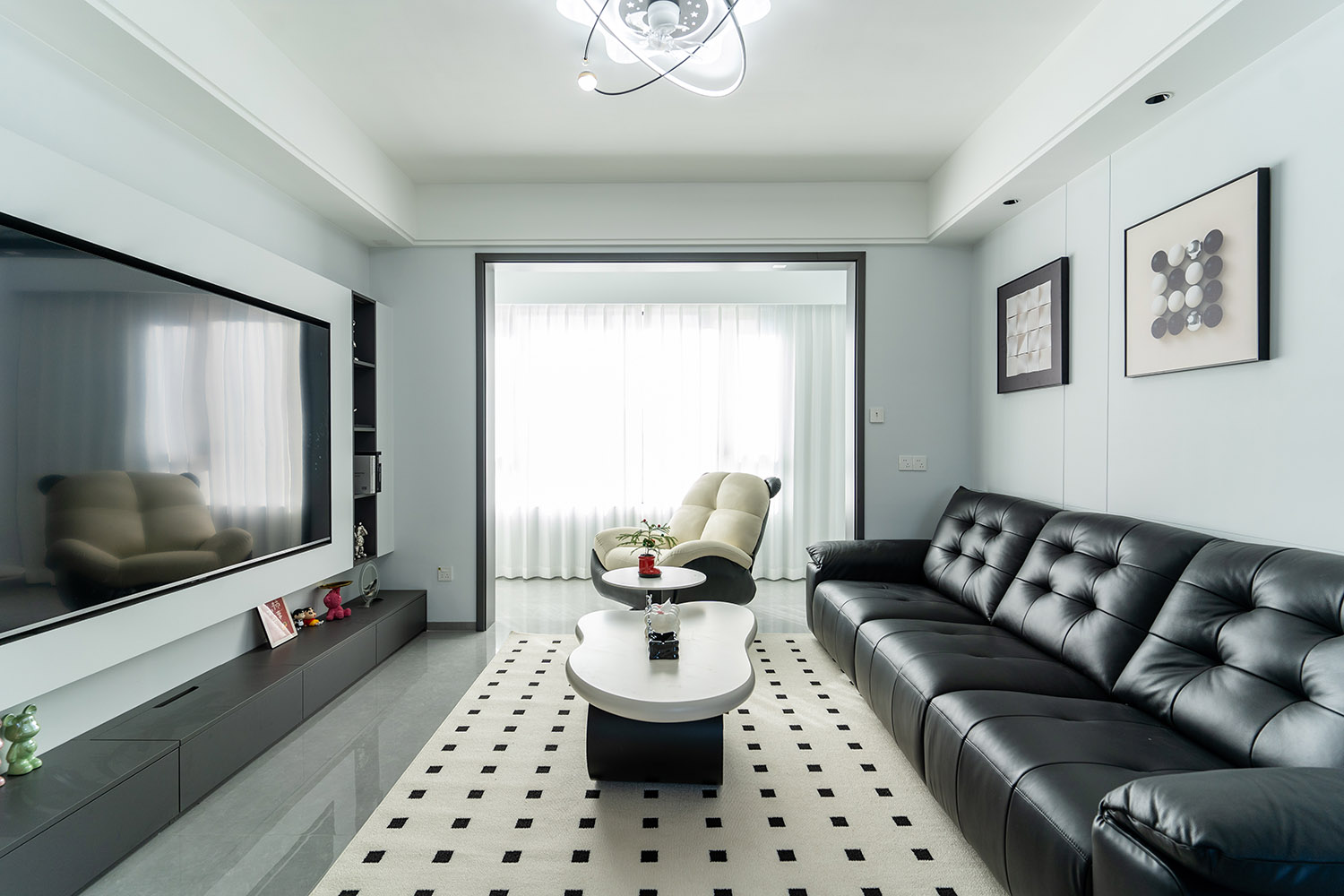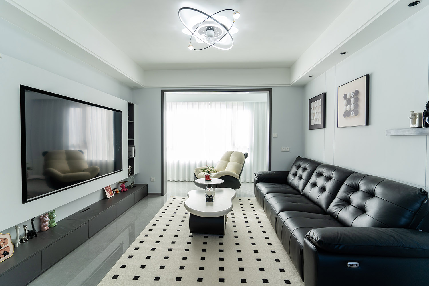 本案以“像素重組” 為核心理念,將136㎡的空間視作一個(gè)可以拆解與重構(gòu)的光影實(shí)驗(yàn)室。設(shè)計(jì)放棄所有裝飾性色彩,通過黑、白、灰三種基色的極致比例控制、不同材質(zhì)在單一色系下的質(zhì)感博弈以及精密計(jì)算的光影路徑,構(gòu)筑一個(gè)理性冷靜又充滿感知張力的未來居所。這里不是色彩的缺失,而是將色彩解構(gòu)為更本質(zhì)的光、影與肌理,讓居住回歸材料與空間的本質(zhì)對(duì)話。 通過極致的黑白灰控制與材料實(shí)驗(yàn),探索了現(xiàn)代居住的一種可能性:當(dāng)色彩被剝離,空間的形式、光影與質(zhì)感便被無限放大,人對(duì)空間的感知也因此變得更為敏銳和直接。它并非一個(gè)“冷淡”的空間,而是一個(gè)高度凝練、充滿理性之美并能包容居住者所有情緒與生活的“寧靜背景板”。在這里,一幅畫、一株綠植、一本書,乃至居住者本身,都將成為空間中最生動(dòng)、最富色彩的焦點(diǎn)。