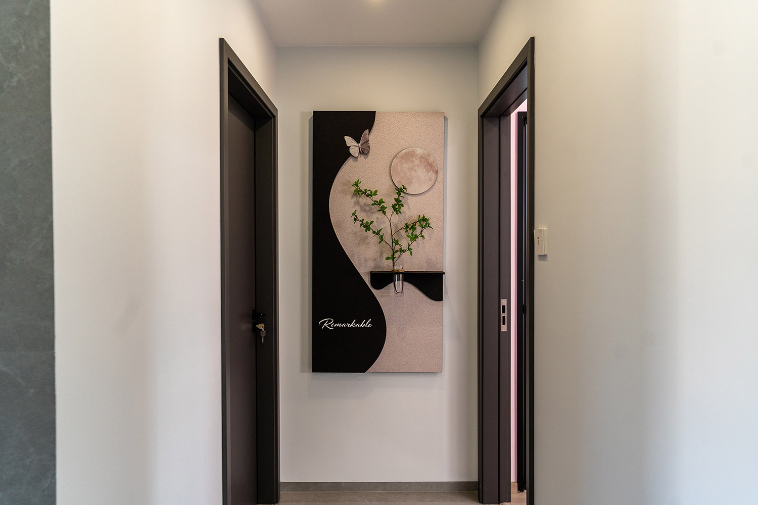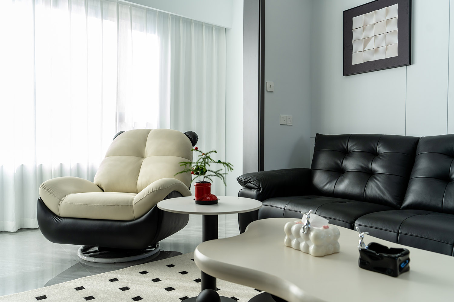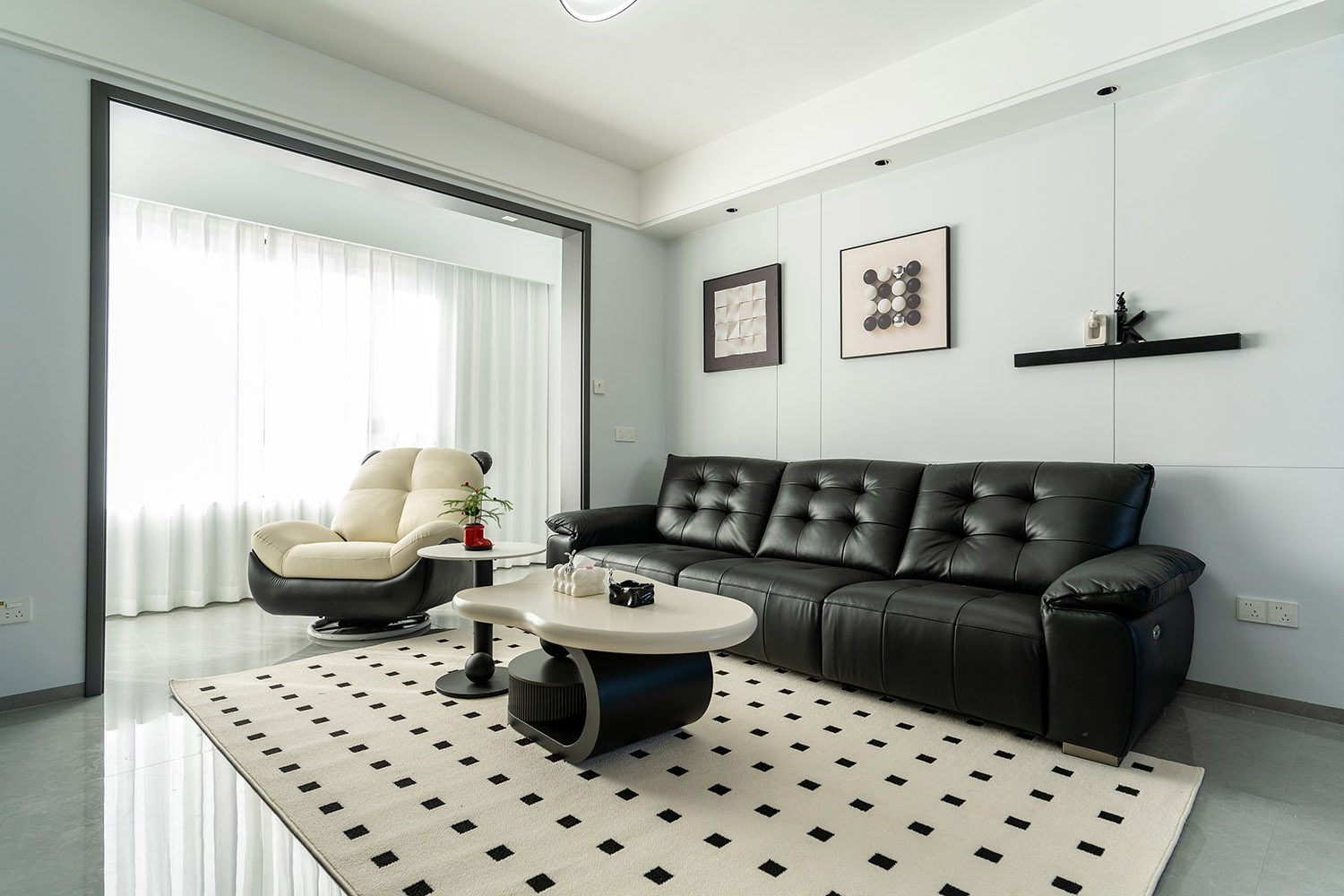 本案以“像素重組” 為核心理念,將136㎡的空間視作一個(gè)可以拆解與重構(gòu)的光影實(shí)驗(yàn)室。設(shè)計(jì)放棄所有裝飾性色彩,通過黑、白、灰三種基色的極致比例控制、不同材質(zhì)在單一色系下的質(zhì)感博弈以及精密計(jì)算的光影路徑,構(gòu)筑一個(gè)理性冷靜又充滿感知張力的未來居所。這里不是色彩的缺失,而是將色彩解構(gòu)為更本質(zhì)的光、影與肌理,讓居住回歸材料與空間的本質(zhì)對(duì)話。 通過極致的黑白灰控制與材料實(shí)驗(yàn),探索了現(xiàn)代居住的一種可能性:當(dāng)色彩被剝離,空間的形式、光影與質(zhì)感便被無限放大,人對(duì)空間的感知也因此變得更為敏銳和直接。它并非一個(gè)“冷淡”的空間,而是一個(gè)高度凝練、充滿理性之美并能包容居住者所有情緒與生活的“寧靜背景板”。在這里,一幅畫、一株綠植、一本書,乃至居住者本身,都將成為空間中最生動(dòng)、最富色彩的焦點(diǎn)。