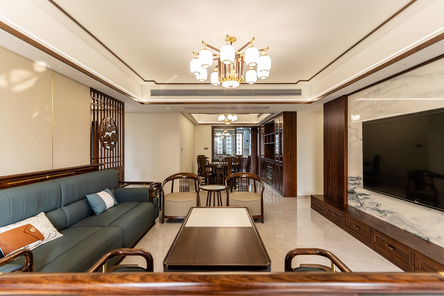 株洲家博整裝金水灣220㎡ 新中式風(fēng)格裝修賞析