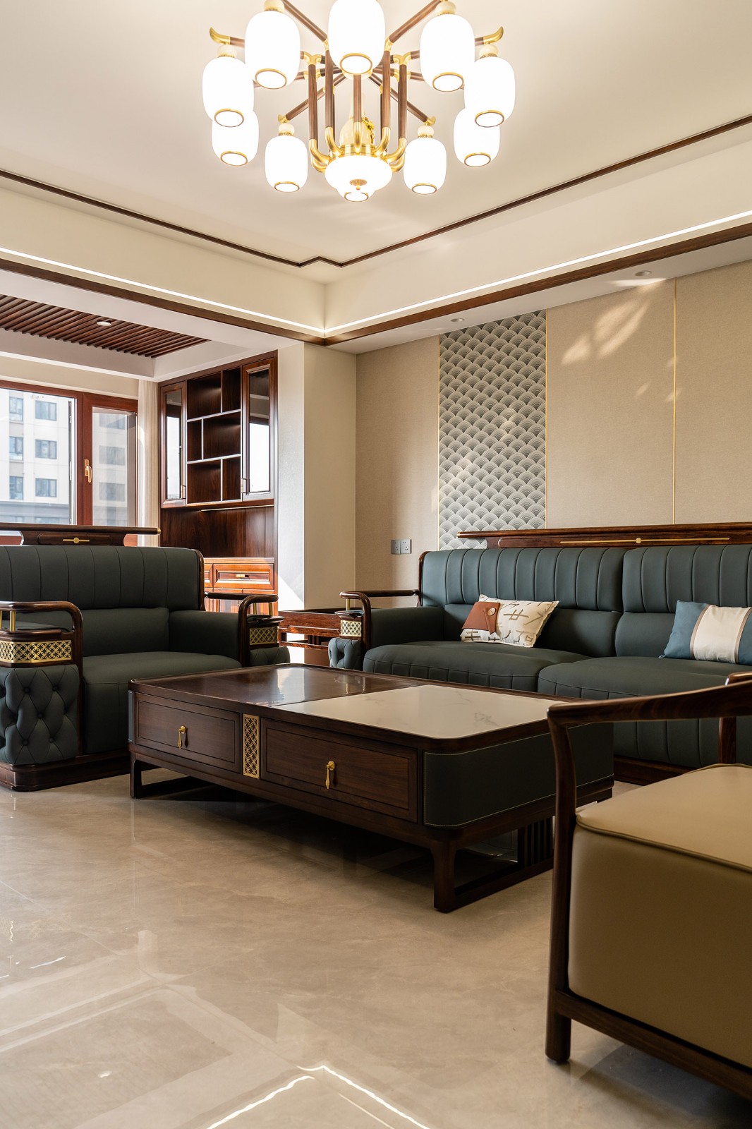 新中式風(fēng)格,是東方美學(xué)精神在現(xiàn)代語境下的華麗轉(zhuǎn)身與集大成者。在220平米的寬闊天地里,它得以超越符號化的堆砌,轉(zhuǎn)而通過宏大的空間敘事、深層的材質(zhì)對話與詩意的意境營造,打造一座兼具文化傳承、家族風(fēng)范與當(dāng)代舒適的傳世大宅。 本案的核心設(shè)計理念是 “大象無形,大音希聲” 。旨在以恢弘的空間尺度,承載最含蓄內(nèi)斂的東方意境。設(shè)計追求的不是形式的繁復(fù),而是空間氣場、文脈氣韻與生活氣息的完美融合。通過中軸對稱、虛實相生、框景借景等傳統(tǒng)造園手法,在現(xiàn)代大宅的框架內(nèi),營造出一種可供三代同堂觀想、品鑒與傳承的居住體驗。