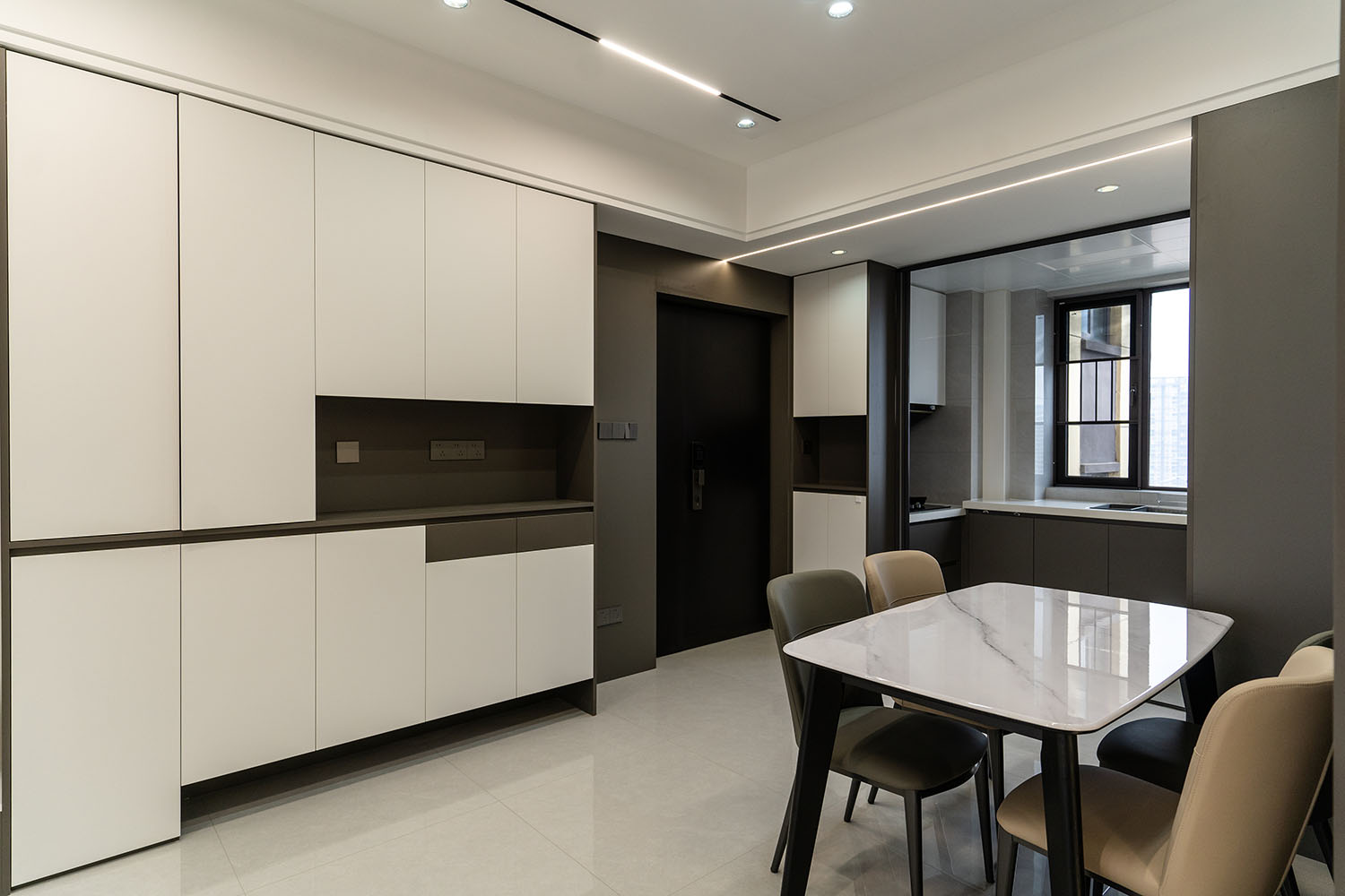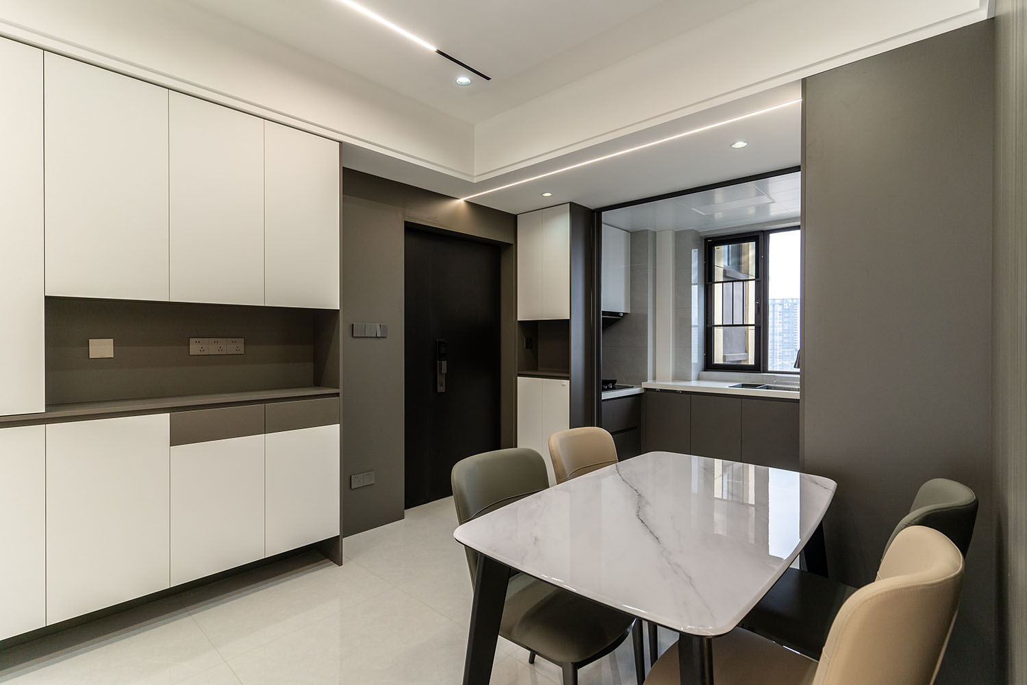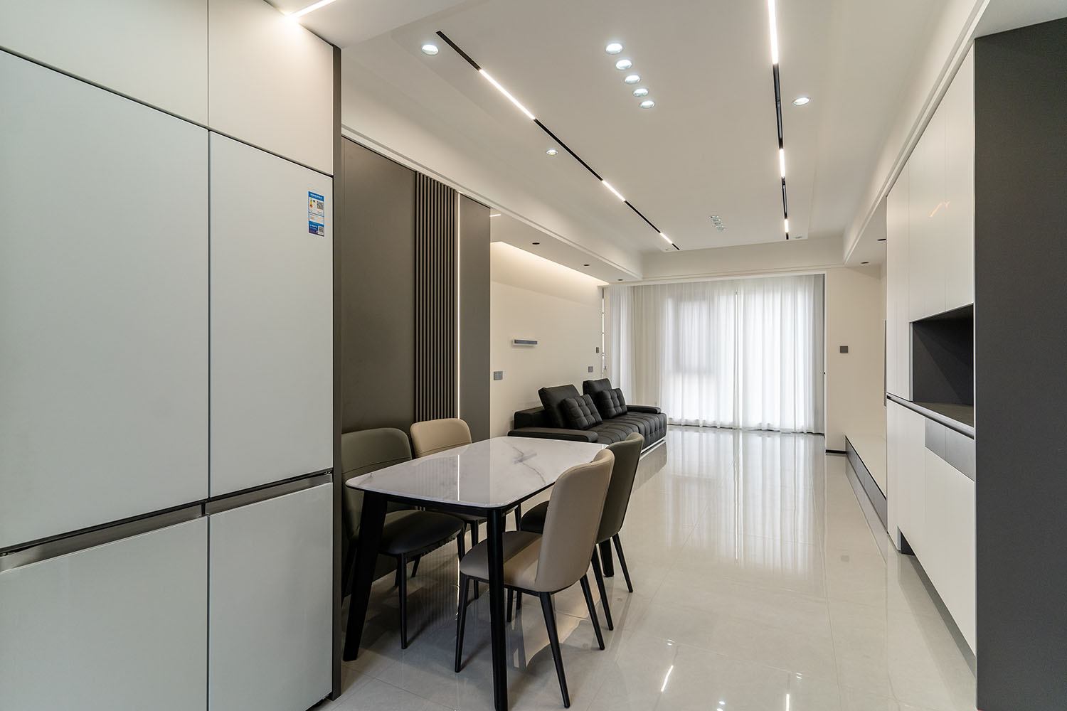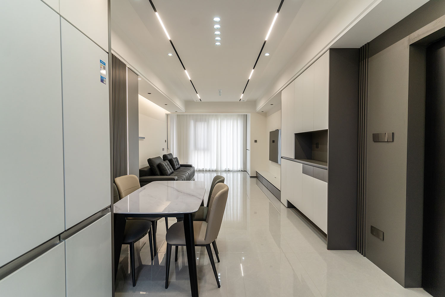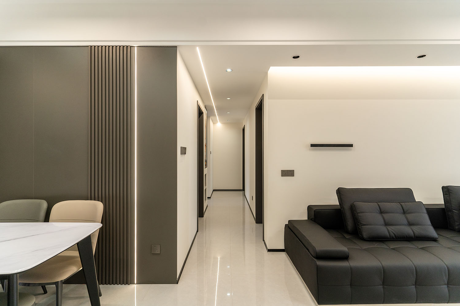設(shè)計(jì)理念:簡而不減,功能至上 現(xiàn)代簡約風(fēng)格以其簡潔的形態(tài)、實(shí)用的功能與克制的藝術(shù)表達(dá),成為打造理想家的經(jīng)典選擇。本案以綠地二號小區(qū)130平方米的戶型為載體,深度解析如何通過現(xiàn)代設(shè)計(jì)手法,在有限空間內(nèi)實(shí)現(xiàn)功能、美感與開闊感的最大化平衡,打造一個(gè)高效、明亮、宜居且充滿細(xì)節(jié)品質(zhì)的現(xiàn)代居所。 本案的核心設(shè)計(jì)理念是 “簡于形,精于心” 。旨在通過精準(zhǔn)的布局、一體化的定制和克制的裝飾,實(shí)現(xiàn)功能性與美學(xué)的完美平衡。設(shè)計(jì)拒絕為形式而形式,每一處都回歸到居住的本質(zhì)需求,在滿足強(qiáng)大收納和流暢動線的基礎(chǔ)上,通過材質(zhì)、光影和線條的細(xì)微變化,營造出一個(gè)兼具理性邏輯與感性溫度的現(xiàn)代家園。