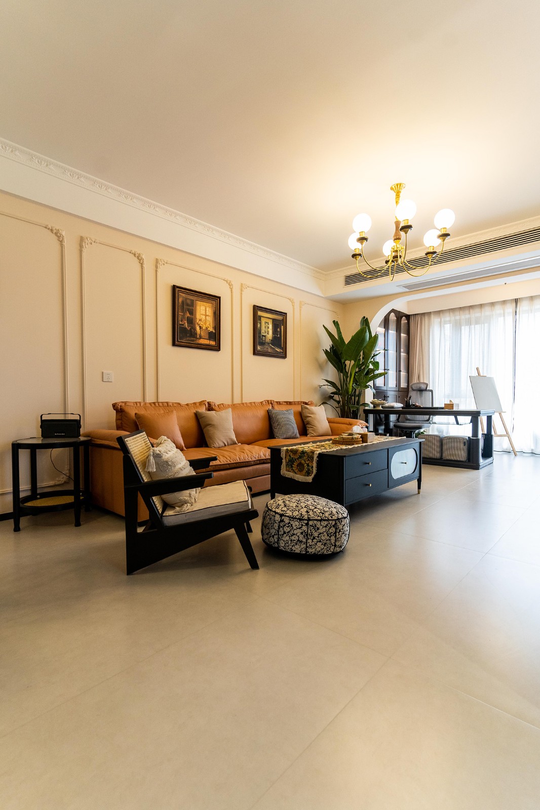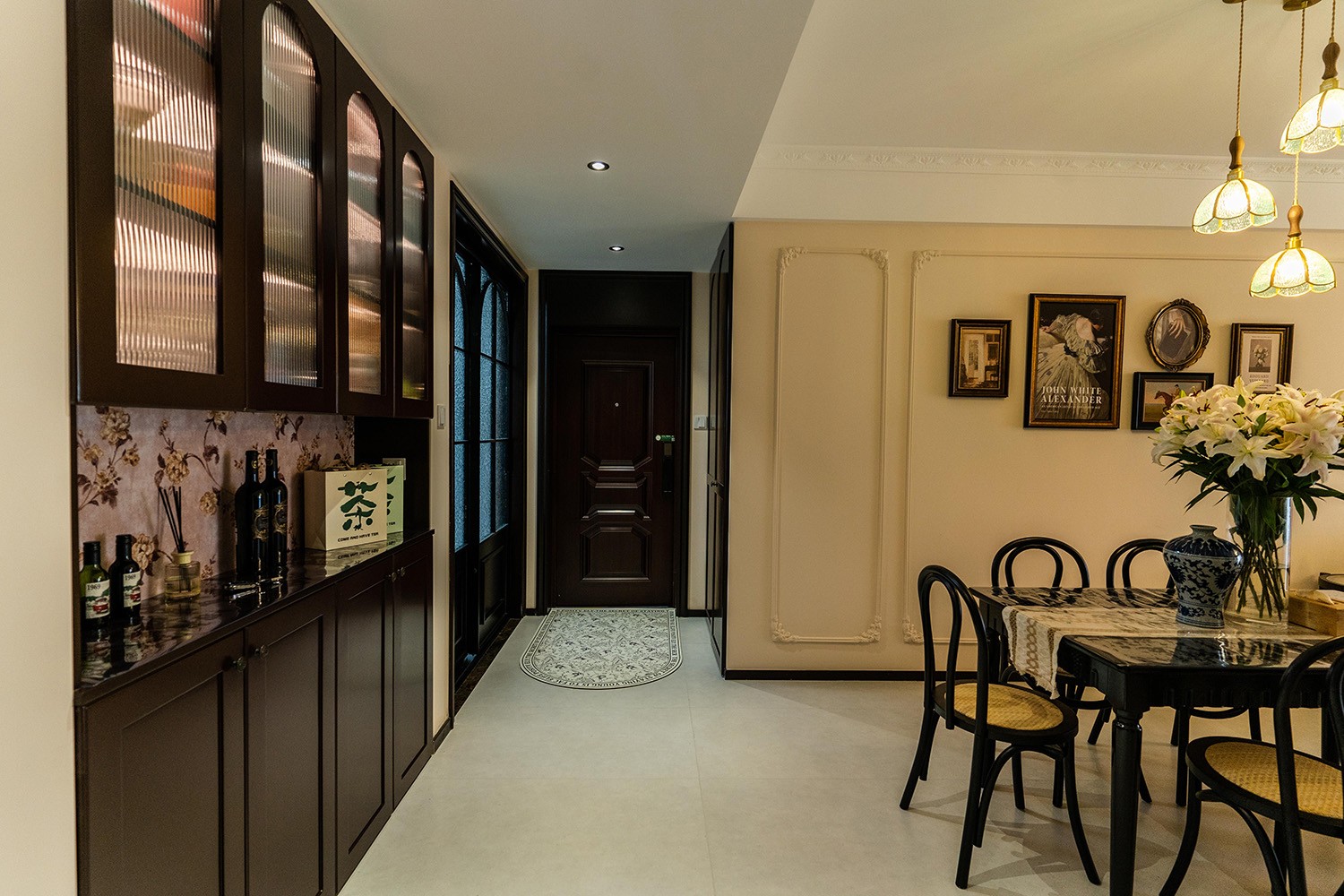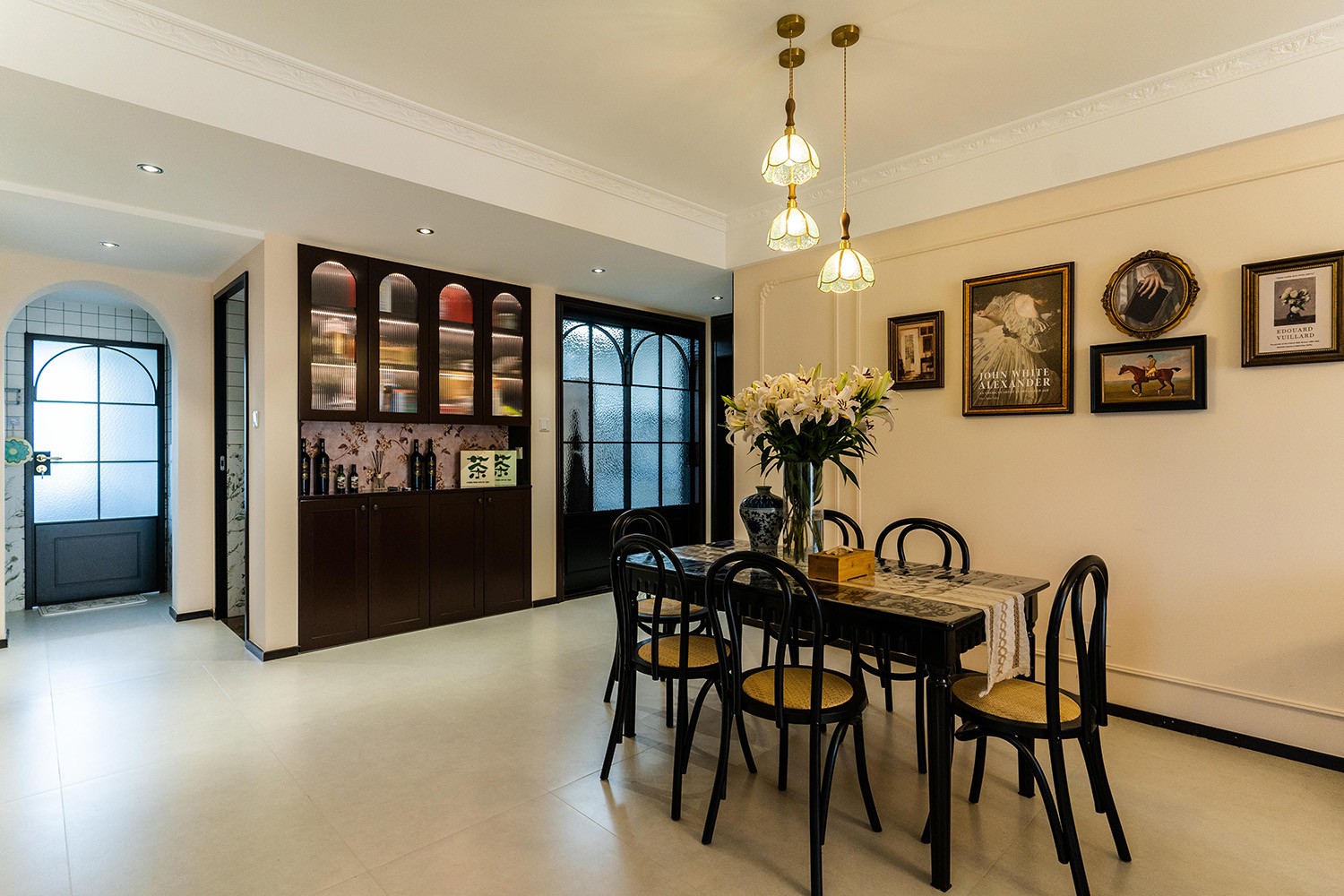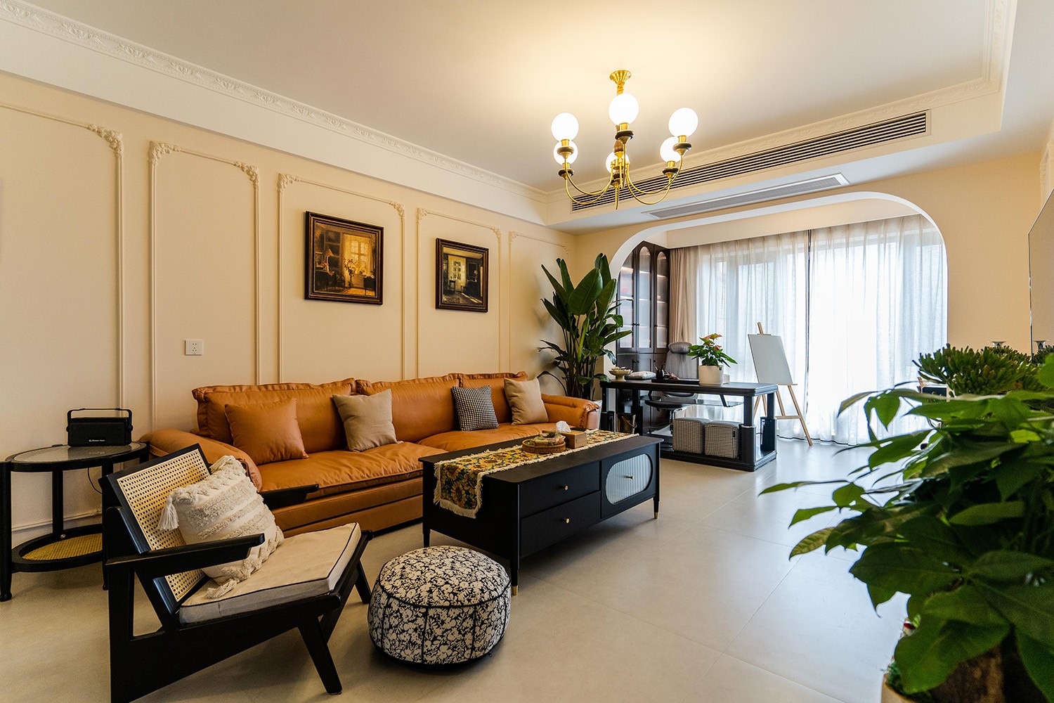 法式復(fù)古風(fēng)格在山水文園113㎡的空間中,通過對色彩、材質(zhì)、光影和造型的精準(zhǔn)把握,打造出一個既有歷史沉淀又符合當(dāng)代審美的理想居所。 軟糯的黑色沙發(fā),色彩與綠植形成呼應(yīng),與陽臺圍合成一處溫馨的生態(tài)空間。在快節(jié)奏、高強度的工作之余,為疲憊的身軀找到安放之處。復(fù)古的色調(diào),仿佛是歲月沉淀的詩篇;細膩的紋理,講述著往昔的故事。吊燈投射出溫暖而柔和的光,照亮了角落里被遺忘的時光。 這不僅僅是一種設(shè)計風(fēng)格,更是對生活方式的深度詮釋——在懷舊的底色中,描摹當(dāng)代生活的浪漫想象;在復(fù)古的韻味里,安放現(xiàn)代人的詩意棲居。