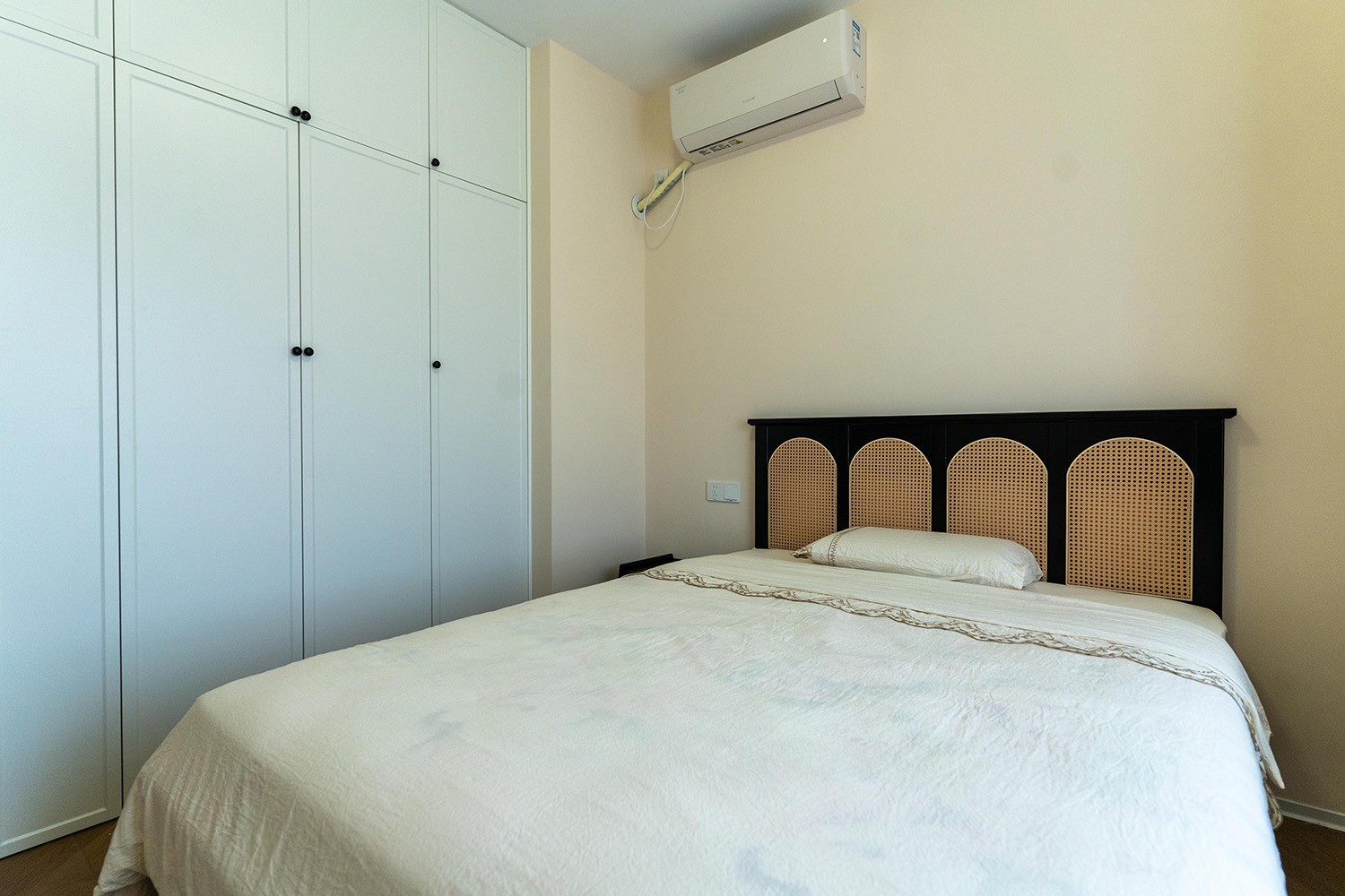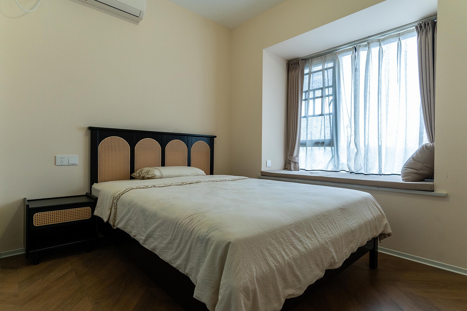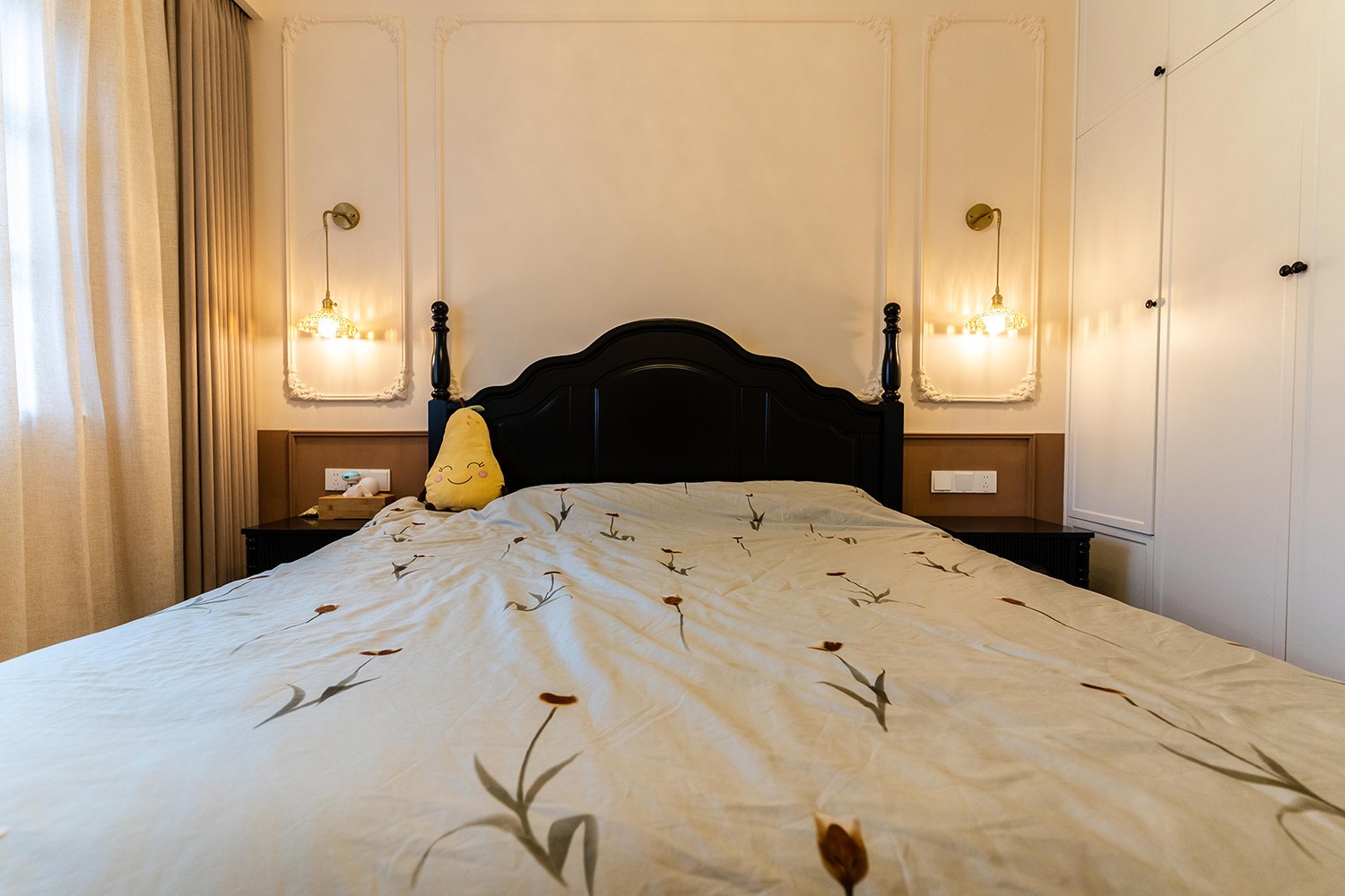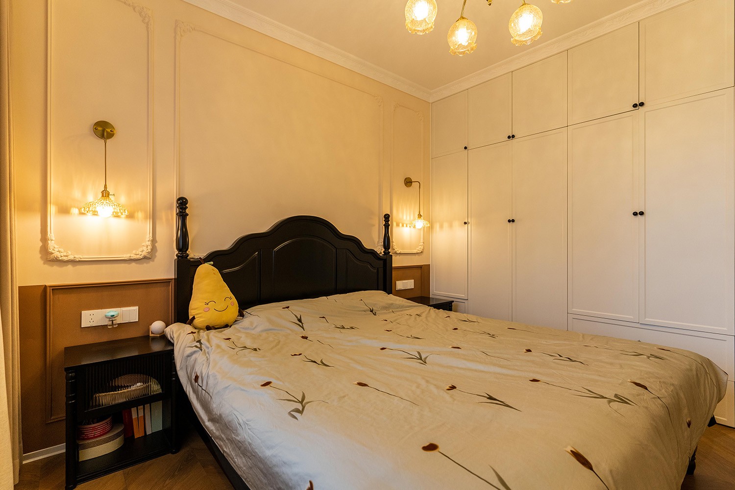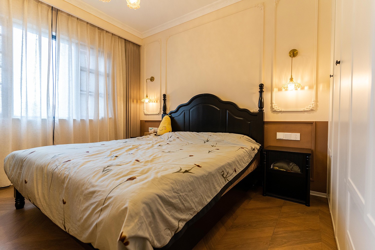 法式復(fù)古風(fēng)格在山水文園113㎡的空間中,通過對色彩、材質(zhì)、光影和造型的精準(zhǔn)把握,打造出一個既有歷史沉淀又符合當(dāng)代審美的理想居所。 軟糯的黑色沙發(fā),色彩與綠植形成呼應(yīng),與陽臺圍合成一處溫馨的生態(tài)空間。在快節(jié)奏、高強度的工作之余,為疲憊的身軀找到安放之處。復(fù)古的色調(diào),仿佛是歲月沉淀的詩篇;細膩的紋理,講述著往昔的故事。吊燈投射出溫暖而柔和的光,照亮了角落里被遺忘的時光。 這不僅僅是一種設(shè)計風(fēng)格,更是對生活方式的深度詮釋——在懷舊的底色中,描摹當(dāng)代生活的浪漫想象;在復(fù)古的韻味里,安放現(xiàn)代人的詩意棲居。