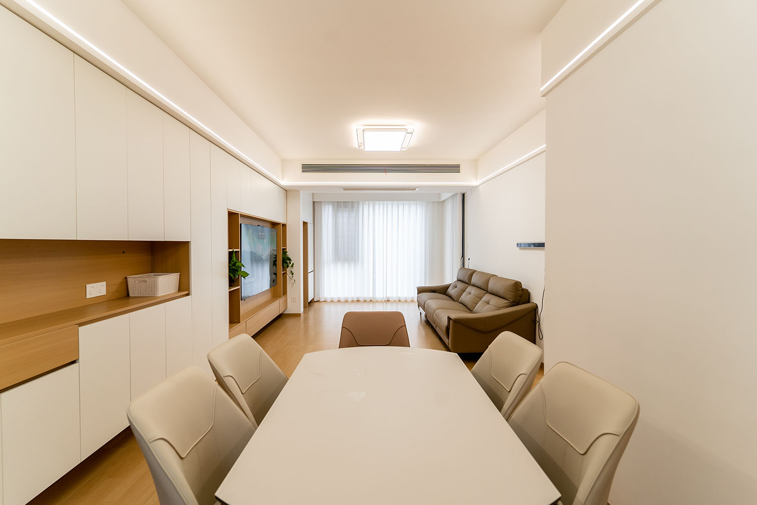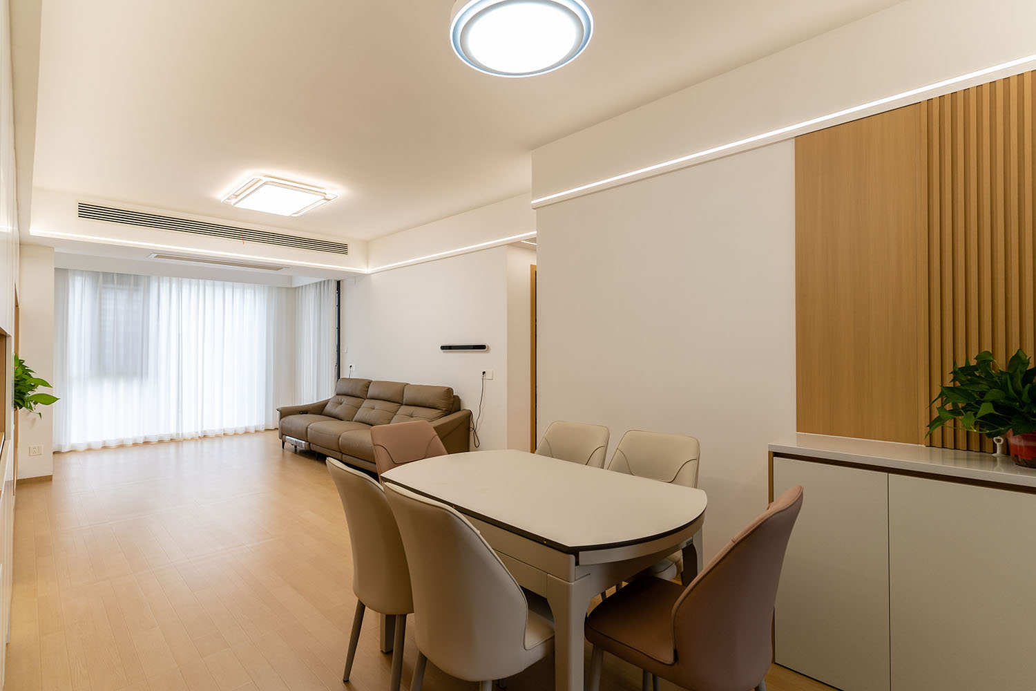 株洲綠地二號(hào)127平米原木風(fēng)格,以 “自然共生,時(shí)光容器” 為核心設(shè)計(jì)理念。本案不止于營(yíng)造一個(gè)靜態(tài)的空間,更旨在打造一個(gè)能承載生活軌跡、伴隨家庭成員共同成長(zhǎng)的 “生命體”——通過(guò)大量運(yùn)用可再生木材、引入自然光影與布局可變系統(tǒng),讓家成為一個(gè)有溫度、會(huì)呼吸的有機(jī)體,在歲月流轉(zhuǎn)中沉淀出獨(dú)特的生活印記與溫暖記憶。 原木風(fēng)格憑借自然溫潤(rùn)、治愈松弛的特質(zhì),一直是裝修圈的熱門(mén)風(fēng)格,深受追求簡(jiǎn)約舒適的家庭青睞。它的魅力在于,通過(guò)溫暖的木質(zhì)調(diào)、沈靜的灰階色以及大篇幅留白等視覺(jué)手法,塑造平實(shí)放松的生活情境,同時(shí)格外注重空間感的營(yíng)造與光影的自然流動(dòng)。 株洲綠地二號(hào)127平米原木風(fēng)格空間,通過(guò)對(duì)材質(zhì)、光影、色彩和細(xì)節(jié)的精準(zhǔn)把控,實(shí)現(xiàn)了“自然共生,時(shí)光容器”的設(shè)計(jì)理想。統(tǒng)一的木色調(diào)從地板延伸至柜體,像大地生長(zhǎng)出的脈絡(luò),將整個(gè)空間溫柔地錨固在一片寧?kù)o之中。 原木風(fēng)不是簡(jiǎn)單的“木頭堆砌”,而是一種回歸自然的生活哲學(xué)。在這里,靜坐、獨(dú)處、呼吸……生活最終在光的薄霧與原木的呼吸中,展現(xiàn)出純粹清澈的本相。真正的奢侈從無(wú)喧囂,正是這份由木、光與精工共同鐫刻的寧?kù)o雋永,在時(shí)光里低語(yǔ)著“家”最樸素的真意。 當(dāng)腳步的回聲被墻壁溫柔包裹,那些刻意保留的間隙,恰是造景。原木之境,是對(duì)生活本真的追尋,是對(duì)內(nèi)心寧?kù)o的向往——讓我們?cè)诳旃?jié)奏的現(xiàn)代生活中,尋得一片可以放慢腳步、沉淀心靈的凈土,感受生活最純粹的美好。