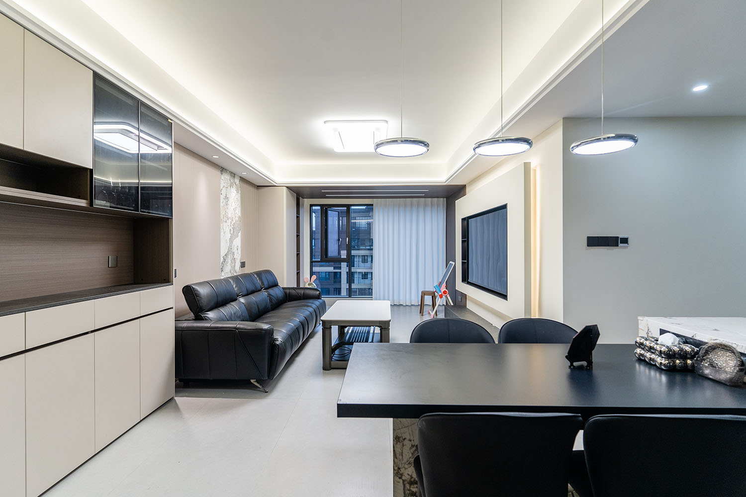 株洲建發(fā)央著115平米現(xiàn)代風(fēng)格,以 “功能為綱,體驗(yàn)為魂” 為核心設(shè)計(jì)理念,將空間視為一個(gè)高效運(yùn)轉(zhuǎn)的精工系統(tǒng)。設(shè)計(jì)摒棄一切非必要的裝飾,將每一寸面積都轉(zhuǎn)化為提升居住品質(zhì)的有效價(jià)值,通過科學(xué)動(dòng)線、模塊化收納與智能人居的考量,為居者量身打造一個(gè)在視覺上極度清爽、在使用上極致便捷、在感受上無(wú)比放松的沉浸式居住體驗(yàn)。 本案的核心理念在于 “定制化效率,沉浸式舒適” ?,F(xiàn)代風(fēng)格強(qiáng)調(diào)功能與形式的統(tǒng)一,在115平米的三居室空間中,設(shè)計(jì)師以“少即是多”為原則,通過極簡(jiǎn)的線條、克制的色彩和純粹的材料,打造一個(gè)干凈、通透且富有高級(jí)感的居住空間,滿足都市精英對(duì)高效、舒適生活的追求。 株洲建發(fā)央著115平米現(xiàn)代風(fēng)格空間,通過對(duì)功能、材質(zhì)、光影和收納的精準(zhǔn)把控,實(shí)現(xiàn)了“功能為綱,體驗(yàn)為魂”的設(shè)計(jì)理想。用幾何切割光影,用反差喚醒空間靈魂,每一處設(shè)計(jì)都在回應(yīng)著現(xiàn)代家庭對(duì)品質(zhì)、舒適與美學(xué)的多重需求。 褪去浮華,回歸本真。在黑白灰的底色里,一盞暖調(diào)落地?zé)羰巧钜沟呐惆?,一株綠植是呼吸的自然注解,灰調(diào)沙發(fā)上的褶皺藏著生活的溫度。克制,是為了讓真正重要的事物發(fā)光。 當(dāng)腳步的回聲被墻壁溫柔包裹,那些刻意保留的留白,恰是造景。現(xiàn)代之境,是對(duì)生活本真的追尋,是對(duì)內(nèi)心寧?kù)o的向往——讓我們?cè)诳旃?jié)奏的都市生活中,尋得一片可以放慢腳步、沉淀心靈的凈土,感受生活最純粹的美好。 這不僅僅是一個(gè)居住空間,更是一個(gè)能夠承載日常詩(shī)意、安放生活想象的精工范本。在理性的空間秩序中,譜寫出感性的生活詩(shī)篇。