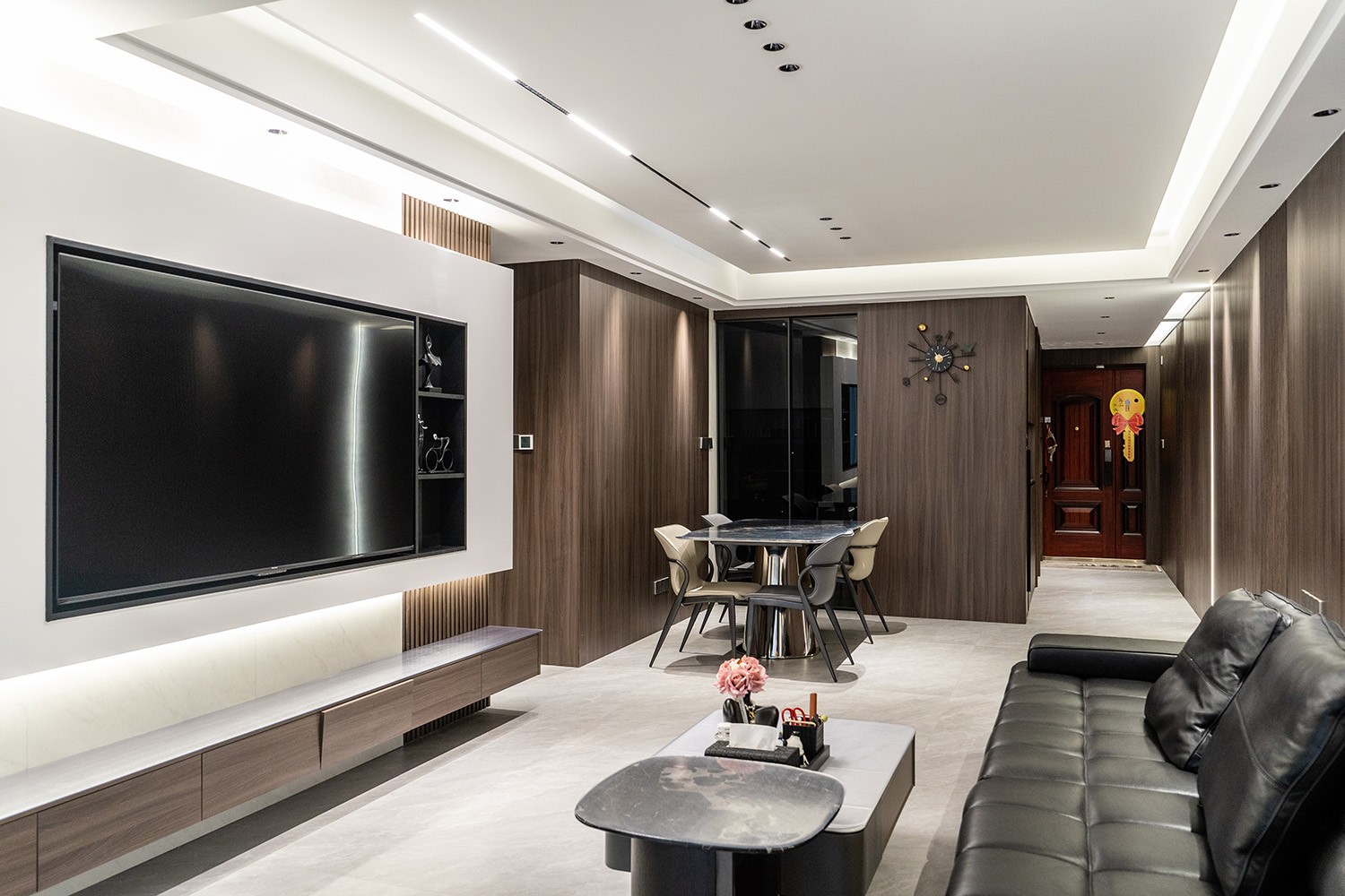株洲學(xué)府港灣123平米意式極簡風(fēng)格,以 “奢于細(xì)節(jié),簡于形式” 為核心設(shè)計(jì)理念。本案追求的并非表面的奢華,而是通過對(duì)材質(zhì)肌理的深刻理解、對(duì)光影變化的精準(zhǔn)把控以及對(duì)功能的無痕整合,在每一處細(xì)節(jié)中注入品質(zhì)感??臻g呈現(xiàn)一種靜謐的力量,讓居者在日常中感受到被頂級(jí)工藝與設(shè)計(jì)美學(xué)包圍的從容。 意式極簡,是理性美學(xué)與精致生活的統(tǒng)一。它自帶意大利設(shè)計(jì)的藝術(shù)基因,在123平米的三居室中,通過精煉的線條、高品質(zhì)的材質(zhì)與嚴(yán)謹(jǐn)?shù)谋壤?,?gòu)筑一個(gè)兼具冷靜氣場(chǎng)與溫潤觸感的居住空間。設(shè)計(jì)從“一體化收納+無界動(dòng)線”出發(fā),以無主燈系統(tǒng)、懸浮結(jié)構(gòu)、隱形柜體弱化物理邊界,既以封閉收納維持整潔,又借木飾面、巖板的天然肌理,平衡極簡的冷冽與居家的松弛。 株洲學(xué)府港灣123平米意式極簡空間,通過對(duì)材質(zhì)、線條、光影和細(xì)節(jié)的精準(zhǔn)把控,實(shí)現(xiàn)了“奢于細(xì)節(jié),簡于形式”的設(shè)計(jì)理想。它以暖灰、淺咖、木色交織為語言,構(gòu)筑一個(gè)理性冷靜又充滿感知張力的居住空間。 意式極簡的高級(jí),是“少即是多”的精深表達(dá)。通過高品質(zhì)材質(zhì)的黃金搭配、利落統(tǒng)一的線條、柔和分層的燈光,凸顯低調(diào)質(zhì)感。在這里,一幅畫、一株綠植、一本書,乃至居住者本身,都將成為空間中最生動(dòng)的焦點(diǎn)。 在株洲,選擇家博整裝這樣深耕本土、專業(yè)專注的裝修公司,讓專業(yè)的團(tuán)隊(duì)為您打造一個(gè)兼具國際品味與生活溫度的精致居所。讓每一天的日常,都成為與意式優(yōu)雅對(duì)話的從容時(shí)光。